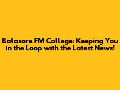 Balasore FM College: Keeping You in the Loop with the Latest News!