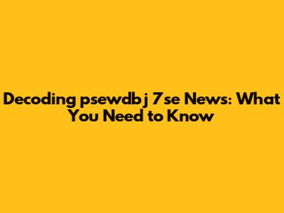 Breaking News: Decoding The Latest In Psewdbj 7se