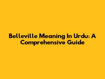 Belleville Meaning In Urdu: A Comprehensive Guide