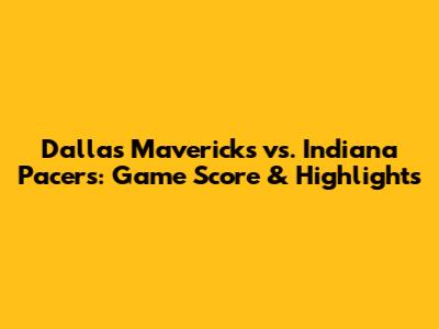 Dallas Mavericks Vs. Indiana Pacers: Game Score & Highlights