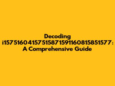 Alright, guys, let's dive into the mysterious world of 'i15751604157515871591160815851577'! What is it? Where does it come from? And why should you even care? Well, whether you stumbled upon this enigmatic string of characters in a database, a cryptic message, or some bizarre corner of the internet, understanding its potential meaning and significance is key. This guide aims to unravel the secrets behind 'i15751604157515871591160815851577,' offering insights and methodologies to decode its purpose. We'll explore possible interpretations, delve into potential origins, and equip you with the tools to decipher similar alphanumeric sequences you might encounter in the future. From its surface-level appearance to its potential embedded meanings, we'll dissect every aspect, ensuring you have a comprehensive understanding. So buckle up, and let's embark on this decoding adventure together! Let’s see what makes this such a fascinating topic and how we can break it down piece by piece. Remember, every character could hold a clue, so pay close attention!