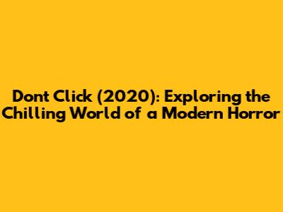 Hey everyone, let's dive into the creepy world of the 2020 horror thriller, Don't Click! This movie is a real nail-biter that explores how our digital obsessions can lead to some seriously terrifying consequences. We're talking about a film that taps into the anxieties of the online age, making you think twice before clicking on that next link. It's a suspenseful ride with a modern twist, keeping you on the edge of your seat from start to finish. So, grab your snacks, turn down the lights, and let's unravel what makes Don't Click such a compelling watch. We'll be breaking down the plot, the scares, and why this movie has resonated with audiences. Buckle up, guys – it's going to be a thrilling ride!