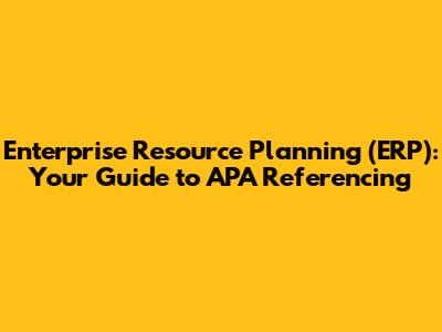 Alright, guys, let's dive into the world of Enterprise Resource Planning (ERP) and how to properly reference it using the American Psychological Association (APA) style. For those unfamiliar, ERP systems are basically the backbone of many modern businesses. They integrate all sorts of functions – from finance and HR to manufacturing and supply chain – into one unified system. This integration helps companies streamline their operations, improve decision-making, and boost overall efficiency. Now, when you're writing about ERP in academic or professional contexts, you'll often need to cite your sources. That's where APA referencing comes in. We will explore the ins and outs of citing ERP-related materials in APA format, ensuring your work is both credible and academically sound. We'll cover everything from citing journal articles and books to websites and reports, all while keeping it super straightforward and easy to understand. So, grab your coffee, and let's get started on mastering ERP citations in APA style!