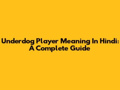 Underdog Player Meaning In Hindi: A Complete Guide