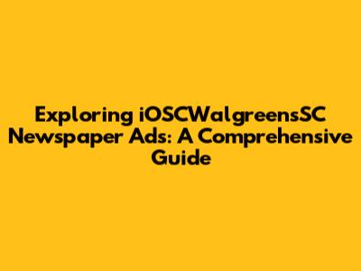 Hey guys! Ever stumbled upon an iOSCWalgreensSC newspaper ad and wondered what it’s all about? Well, you're in the right place! In this comprehensive guide, we're diving deep into the world of iOSCWalgreensSC newspaper ads, breaking down what they are, why they matter, and how you can make the most of them. Whether you're a seasoned ad enthusiast or just curious, this is your ultimate resource. So, let's get started!