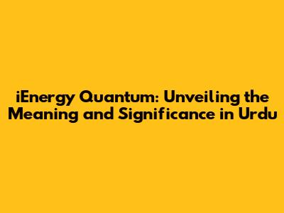 The Significance of Understanding iEnergy Quantum in Urdu