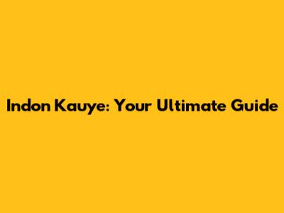 Indon Kauye: Your Ultimate Guide
