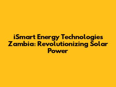 ISmart Energy Technologies Zambia: Revolutionizing Solar Power