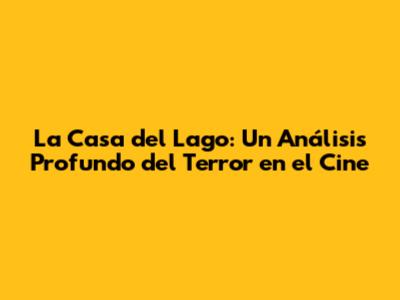 La Casa Del Lago: Un Análisis Profundo Del Terror En El Cine
