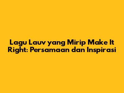 Lagu Lauv Mirip Make It Right: Persamaan Dan Inspirasi