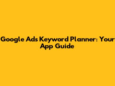 Google Ads Keyword Planner: Your App Guide