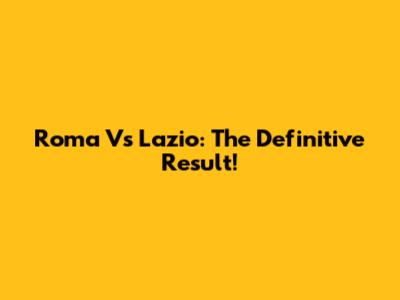 Roma Vs Lazio: The Definitive Result!