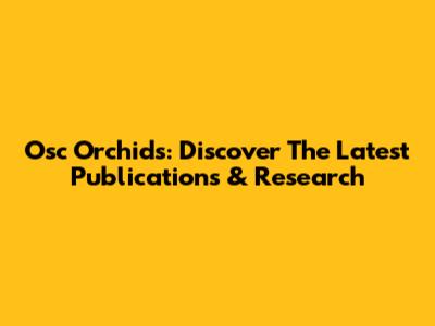 Osc Orchids: Discover The Latest Publications & Research