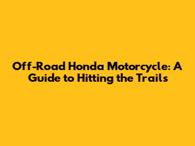 Off-Road Honda Motorcycle: A Guide To Hitting The Trails