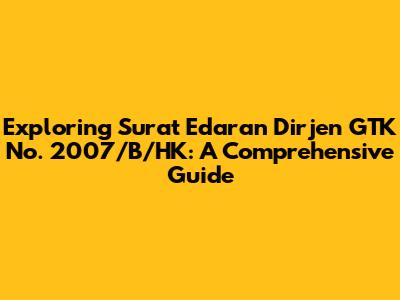 Hey everyone, let's dive deep into Surat Edaran Dirjen GTK No. 2007/B/HK, a crucial document that many educators and administrators need to get their heads around. This isn't just another piece of paper; it's a directive that impacts how things are done, and understanding it thoroughly can save you a ton of hassle and ensure you're always on the right track. We're going to break down its key components, explain why it's important, and help you navigate its nitty-gritty details so you can feel confident and informed. So, grab a coffee, settle in, and let's get started on unraveling this important circular together!