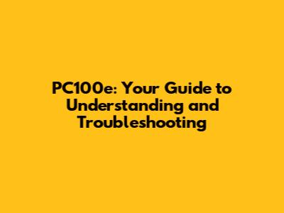PC100e: Your Guide To Understanding And Troubleshooting
