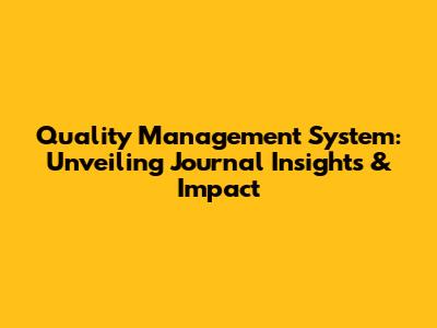 Quality Management System: Journal Insights & Impact
