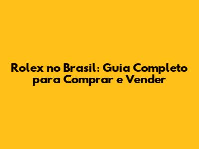 Rolex No Brasil: Guia Completo Para Comprar E Vender