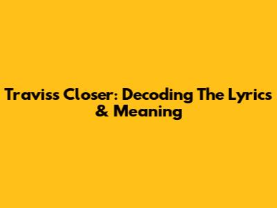 Travis's Closer: Decoding The Lyrics & Meaning