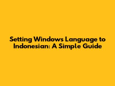 Setting Windows Language To Indonesian: A Simple Guide