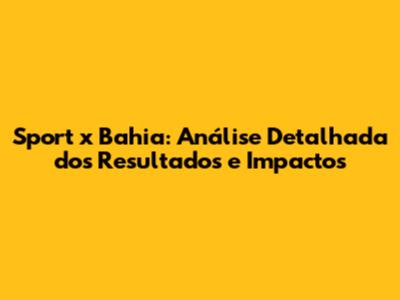 Sport X Bahia: Análise Detalhada Dos Resultados E Impactos