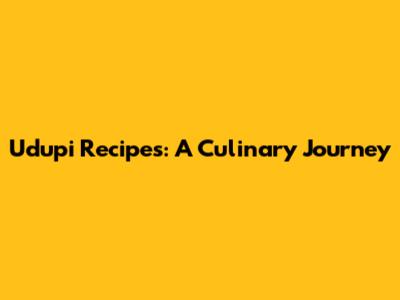 Udupi Recipes: A Culinary Journey