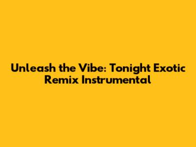 How to Experience and Appreciate the Tonight Exotic Remix Instrumental