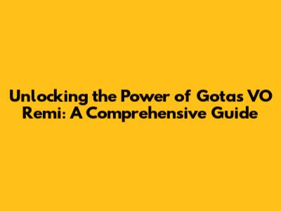 Hey guys! Ever heard of Gotas VO Remi? If you're scratching your head, no worries! This guide is designed to break down everything you need to know about Gotas VO Remi. We'll dive deep into what it is, its benefits, and how it might fit into your life. Whether you're a seasoned pro or just curious, this is your one-stop shop for understanding this topic. Let's get started!