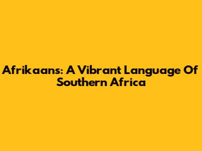 Afrikaans: A Vibrant Language Of Southern Africa